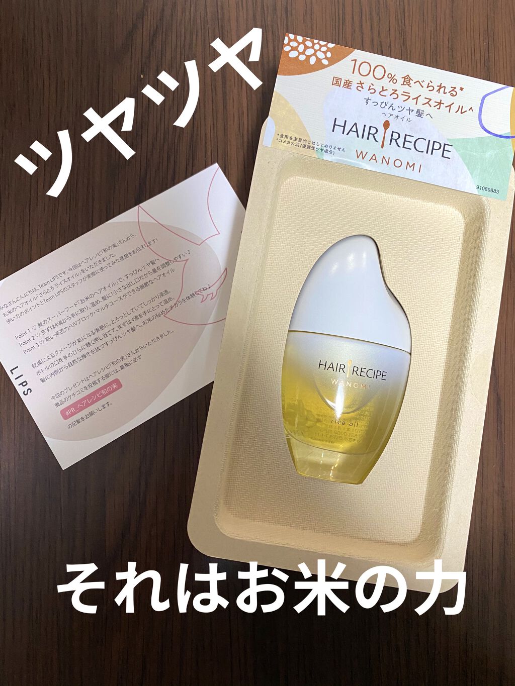 - 国産のピュアな米ぬかオイル*1 が、パサつく髪の内側まで浸透、補修するお米のヘアオイル。 芯からしっとり、なのにべたつかない。 ●古来より伝わる米ぬか美容 古来より、お米には優れた美容効果があることが知られており、肌や髪のうるおいを保つために使われてきました。 「和の実 by ヘアレシピ」はそんなお米のちからに着目。お米由来のヘアケアで、うるおいに満ちた、天使の つや髪へ導きます。 ●1000 粒からたった 1 滴しか採れない貴重な米ぬかオイル*1 米ぬかと米胚芽から抽出される米ぬかオイル*1 は、お米 1000 粒からたった 1 滴しか採れない貴重なオイルです。 独自に開発された精製方法により、日本国内で丁寧に抽出された米ぬかオイル*1 には髪に必要な成分が ぎゅっと濃縮されており、その 1 滴 1 滴が、髪本来の美しさを引き出します。 ●高い浸透力で髪の内側と外側からダブルでアプローチ 日本人の髪はキューティクルが厚くて硬いため、有用成分が浸透しにくいと言われています。そんな日本人の 髪にぴったりなのが米ぬかオイル*1 です。浸透力が非常に高い米ぬかオイル*1は、厚くて硬いと言われる日本人 の髪のキューティクルにも、内側までしっかり浸透します。さらに、外的ストレスからも髪を守って、内と外の両方から アプローチすることで、自然に輝くような、美しい髪を叶えます。 *1 コメヌカ油(浸透性ツヤ成分) ※2022年リニューアル発売