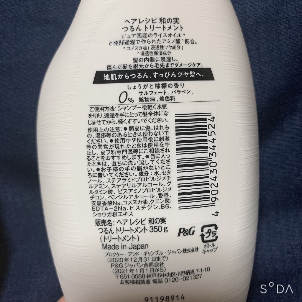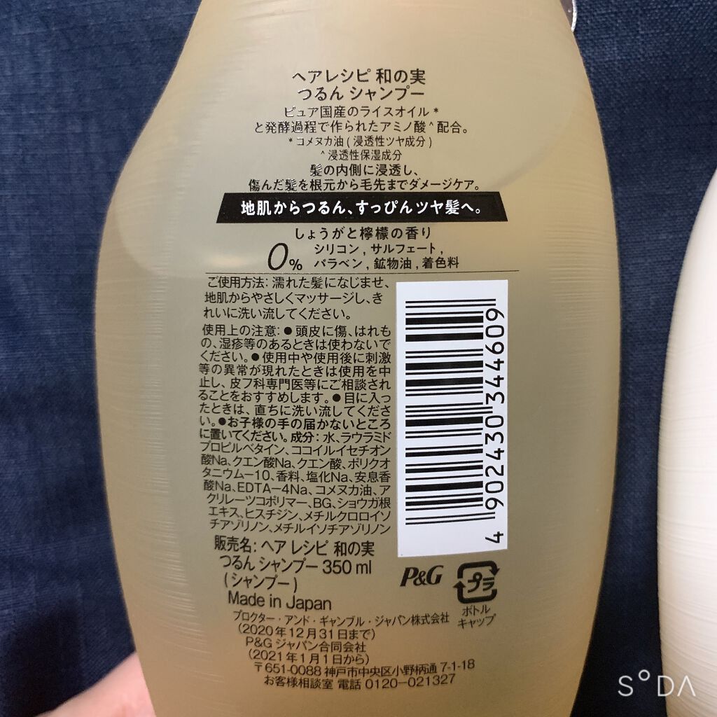 - ヘアレシピ「和の実」から誕生。 髪のスーパーフード「ライスオイル」配合の、お米発想のヘアケア。 特にダメージにおすすめな、「つるん」シャンプー&トリートメント。 髪の内側に「ライスオイル」が浸透し、傷んだ髪を根元から毛先までダメージケア。地肌からつるん、すっぴんツヤ髪へ。 しょうがと檸檬の香りです。 5つの成分無添加:シリコン、サルフェート、パラベン、鉱物油、着色料フリー。 なのに、ふんわりもちもちの泡でつるんとした仕上がりに。 ※トリートメントは、サルフェート、パラベン、鉱物油、着色料フリー。