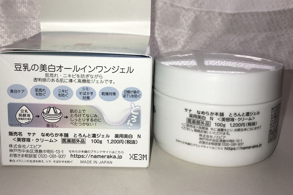 忙しい日々の味方 【なめらか本舗 とろんと濃ジェル 薬用美白 N】 やはりオールインワン化粧品の魅力は、この1つでスキンケアが完了することですよね。『化粧水・乳液・クリーム・パック効果・美容液・化粧下地』の効果が期待できます。 乾燥も防ぐことができていますし、ジェルなのでみずみずしくサラッとしています。ベタつきが苦手な方におすすめです。