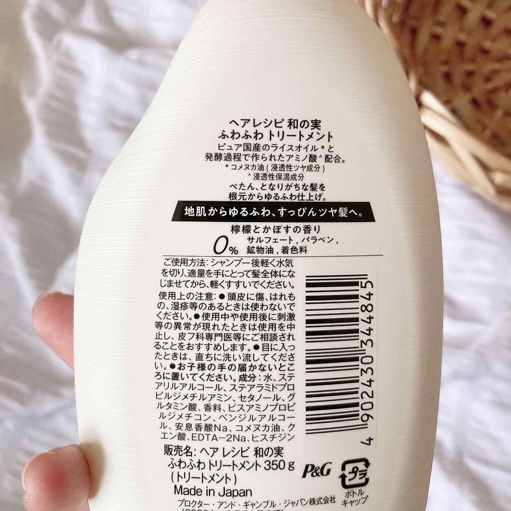 - ヘアレシピ『和の実』から誕生。 髪のスーパーフード「ライスオイル」配合の、お米発想のヘアケア。 ぺたんとなりがちな髪におすすめな、「ふわふわ」シャンプー&トリートメント。 ぺたん、となりがちな髪を根元からしっかり洗い流し、ゆるふわ仕上げ。地肌からゆるふわ、すっぴんツヤ髪へ。 檸檬とかぼすの香りです。 5つの成分無添加:シリコン、サルフェート、パラベン、鉱物油、着色料フリー。 なのに、ふんわりもちもちの泡でふわふわな仕上がりに。 ※トリートメントは、サルフェート、パラベン、鉱物油、着色料フリー。