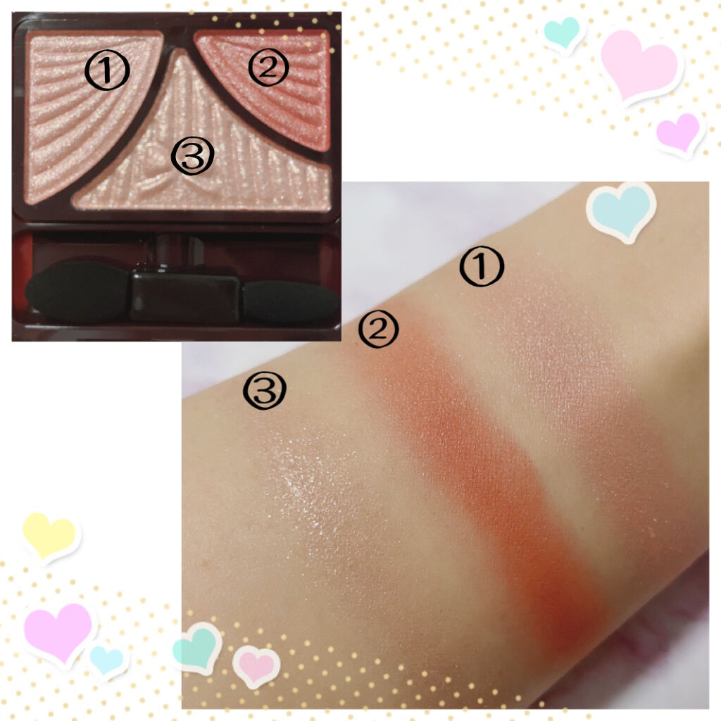 - パウダーなのにみずみずしい♥ 自然な立体感をつくりだす3色アイシャドウパレット 仕上げのコートで、ジューシー感&モチUP! メインカラー&ラインカラーはフィッティングオイル配合のしっとりパウダーで、 まぶたに吸いつくように溶け込み、ジューシーコートスフレで覆うことによって、 濡れたようにツヤめく愛されまぶたで透明感のある目元を演出します。