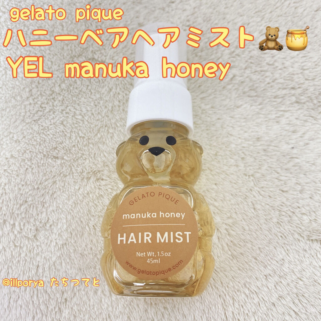 ジェラートピケのテディベアのデザインがめちゃめちゃ可愛いヘアミストです。 このヘアミストは、ブラウンシュガーエキスとマヌカハニーエッセンスを配合したサラサラタイプのヘアケアミスト。 香りは甘いスイーツのようなシュガーの匂いがします。