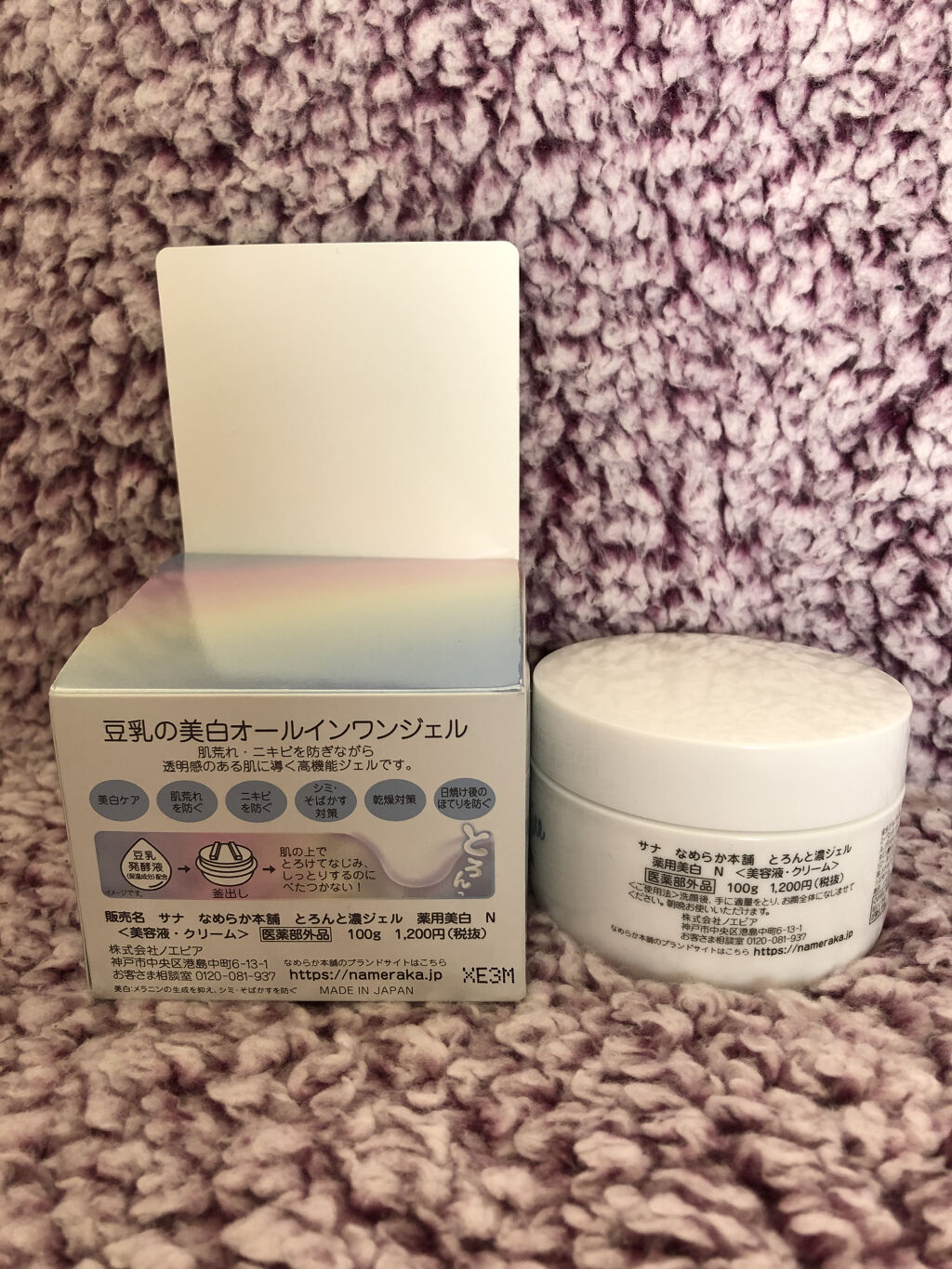忙しい日々の味方 【なめらか本舗 とろんと濃ジェル 薬用美白 N】 やはりオールインワン化粧品の魅力は、この1つでスキンケアが完了することですよね。『化粧水・乳液・クリーム・パック効果・美容液・化粧下地』の効果が期待できます。 乾燥も防ぐことができていますし、ジェルなのでみずみずしくサラッとしています。ベタつきが苦手な方におすすめです。