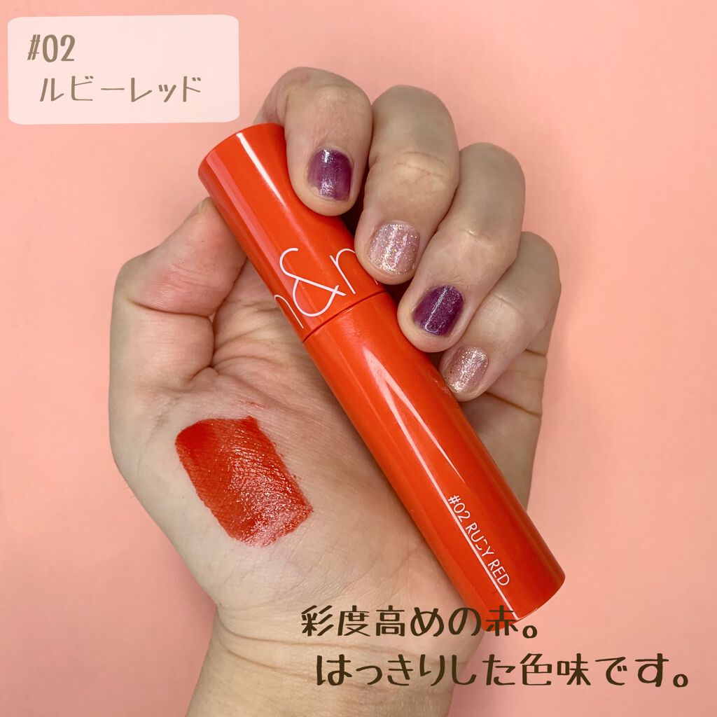 【ロムアンドのリップ手持ち色レビュー】#rom&ndザジューシーラスティングティント¥1,320(税込)︎︎︎︎︎︎☑︎ツヤリップキャンディーみたいなちゅるちゅるパケに、リップの仕上がりもまるでキャンディー🍬🍭︎︎︎︎︎︎☑︎高発色1度塗りで...