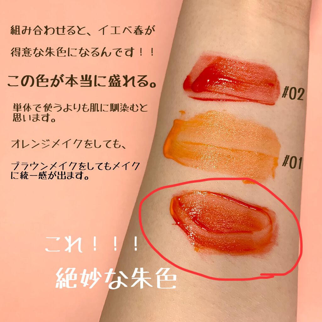 | 潤いが長続きします! 透け色ですが、重ねればパキッと仕上がるので調整しやすいティントだと思います!! | 詳細を見る |
