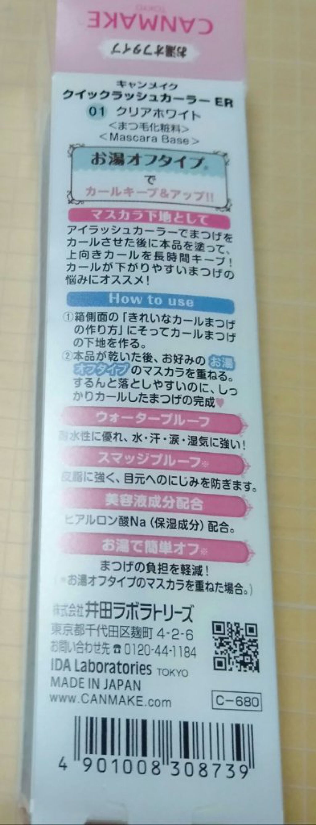 商品詳細情報キャンメイク クイックラッシュカーラーER