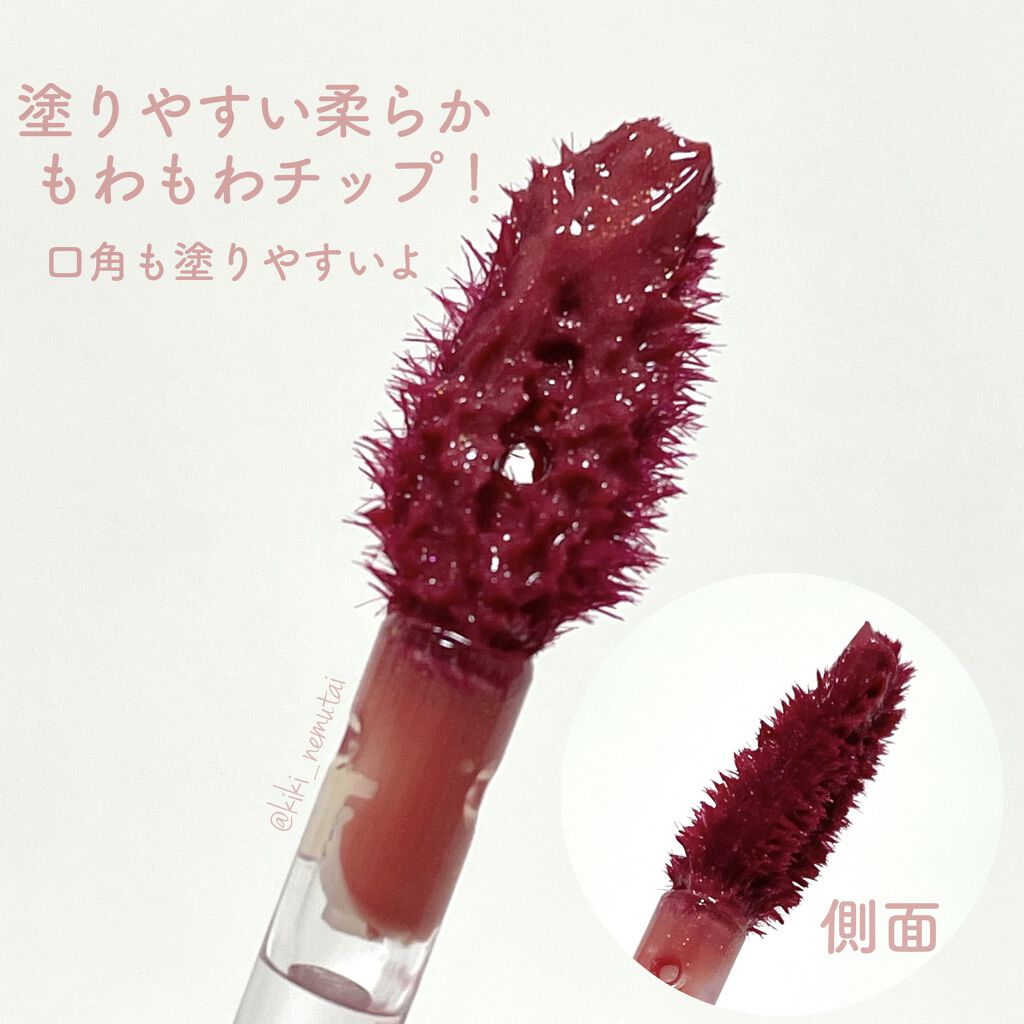- 軽いオイルテクスチャーでべたつかず色移りが少ない、照り輝くパールコーティングティント。 グリッターパールがぶっくりした唇を、ローズヒップオイルやオリーブオイルやアボカドオイルなどがうるっとした唇を演出。