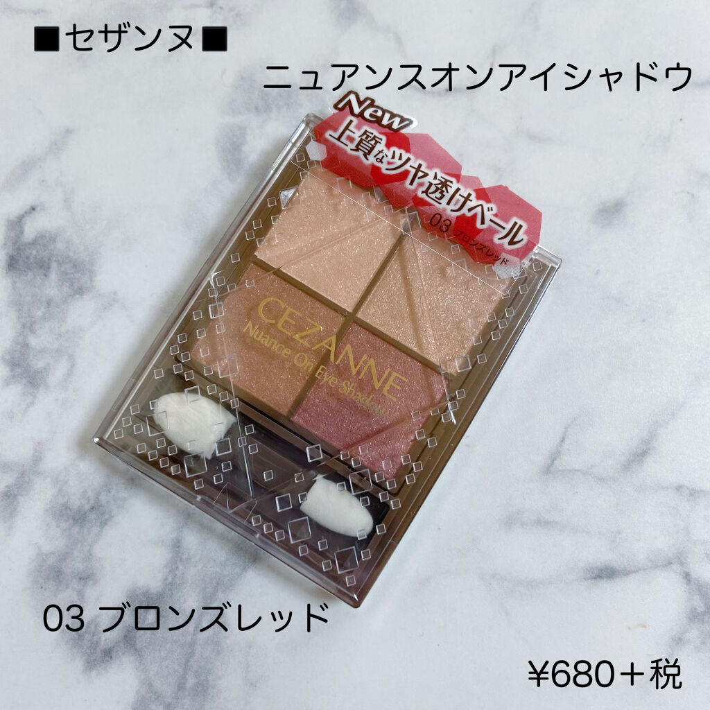 ❤️CEZANNEニュアンスオンアイシャドウ03ブロンズレッド❤️発色は控えめですが、重ねる事で綺麗なツヤ感のあるグラデーションが作れます🙆🏻♀️主張しすぎず、上品な目元に仕上がるアイシャドウです👀💓色味はボルドーっぽいレッドです🥰ラメ飛び...