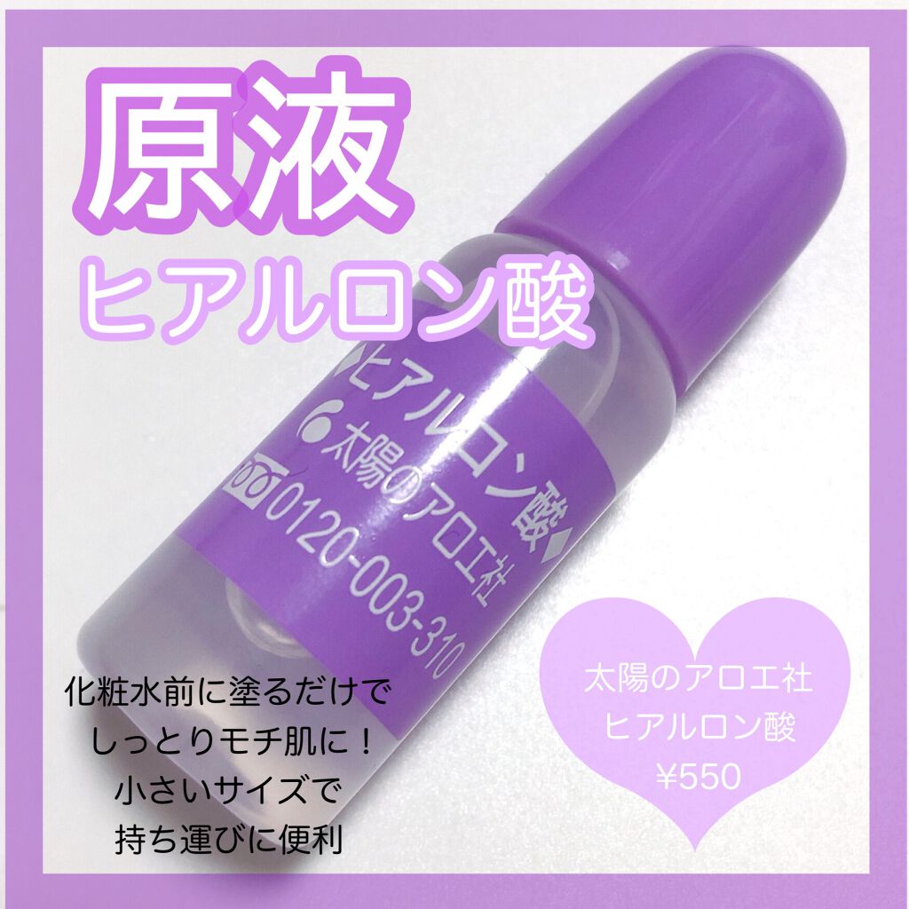 太陽のアロエ社ヒアルロン酸原液💜いつものスキンケアにplusさらっとうるおうヒアルロン酸✨乾燥による小じわを目立たなくする効能評価試験済み📝とろみのあるテクスチャー🤲🏻のびがいいからなじませやすいベタつかないからこの時期でも使いやすいよ☺️顔...