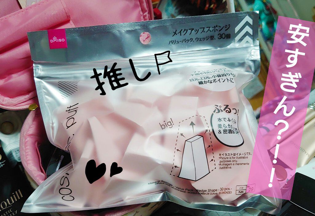 【使った商品】DAISOメイクアップスポンジ【商品の特徴】メイクアップスポンジ【使用感】もちもち【良いところ】水ありも使える【イマイチなところ】なし【どんな人におすすめ?】安いスポンジを探してる人【使い方】水を含ませてしぼってメイクをなじませ...