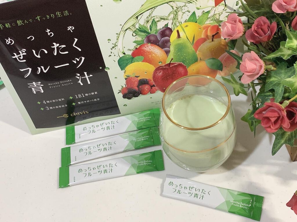 【🍀めっちゃぜいたくフルーツ青汁🍀】コロナの影響で、太りつある身体にピッタリの商品を頂きました✨✨✨「ダイエット」「便通改善」「野菜不足解消」に効果的だそうです"(ノ*>∀<)ノ1食置き換えで今日から試してみることにしました♬.*゚箱にスケジ...