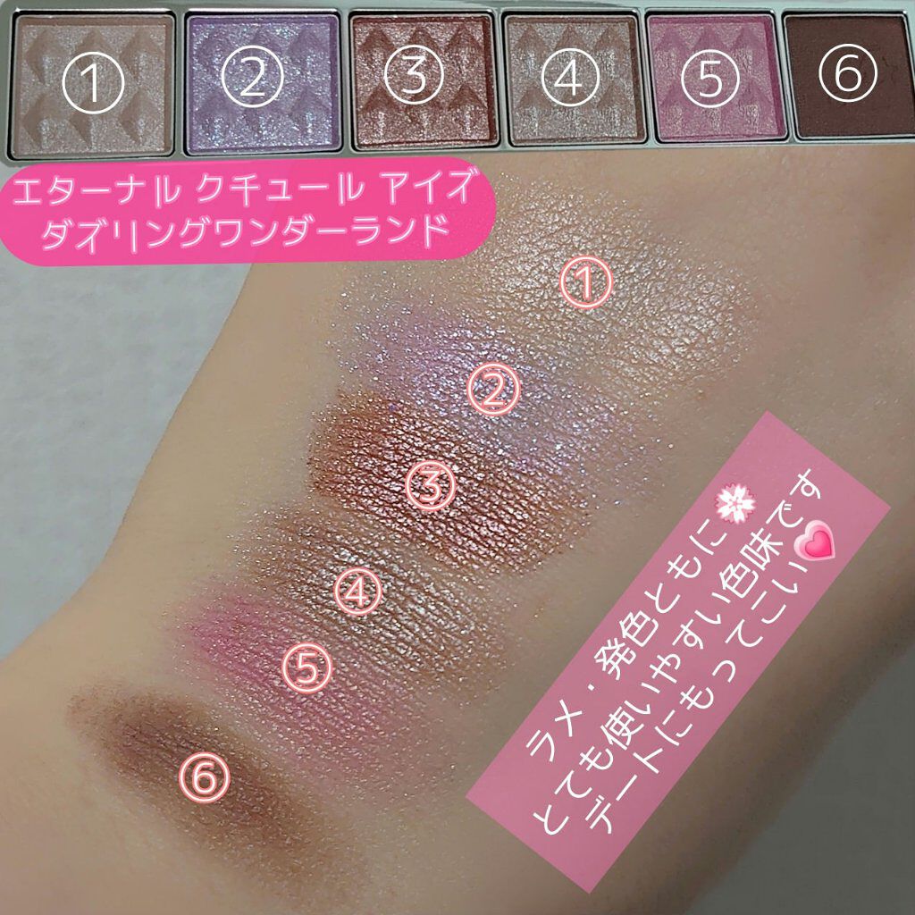 全体的に少しくすんだような色味ですが、キレイに発色してくれるので顔色が悪く見えたりはしません💘 粉の質感はサラッとしつつも しっとりしています✨ なので密着力も高いです💖 このパレットはパープルがベースになっていて そこも可愛らしくてお気に入りです💕💕💕