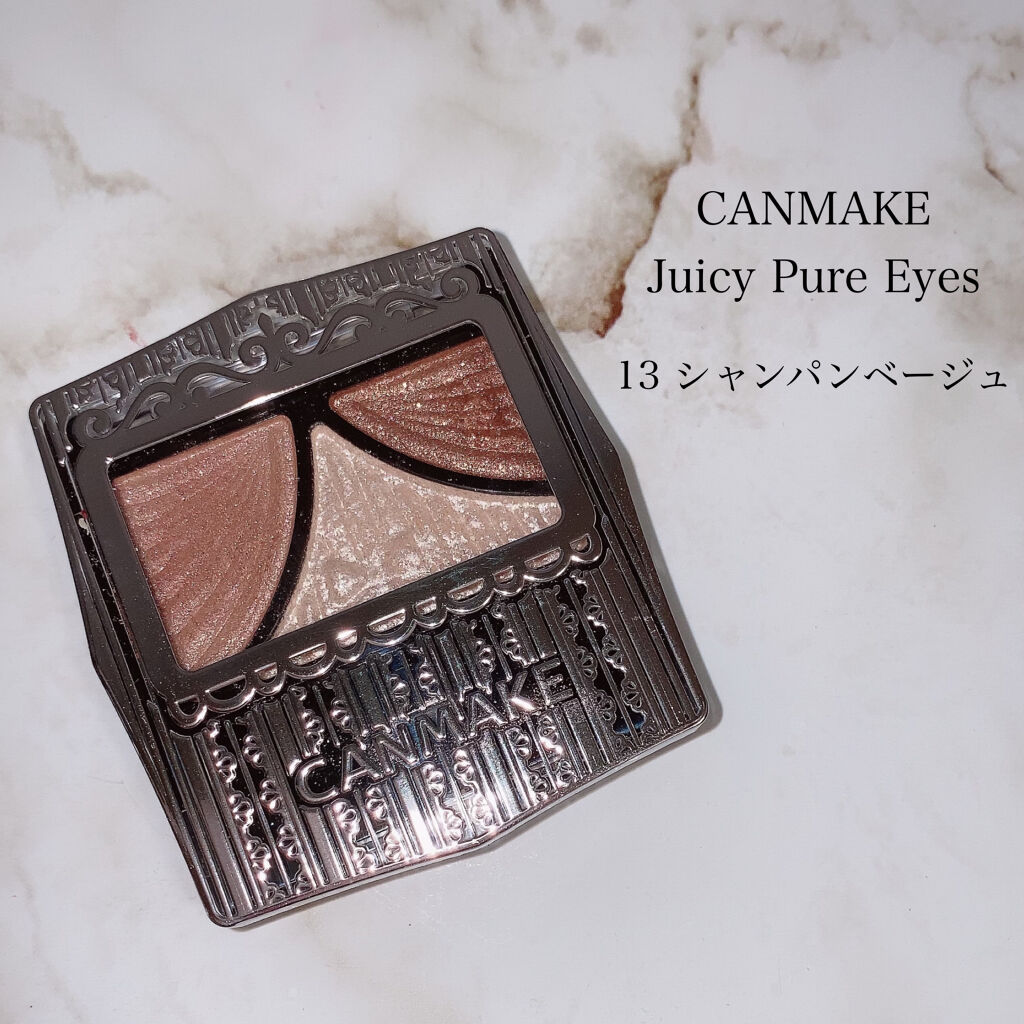 ラッキーカラー「ブラウン」安い!可愛い!3色なので悩まない!ジューシーピュアアイズを使いました。🤎キャンメイクジューシーピュアアイズ13シャンパンベージュ左上をメインに。私の瞼ではほっこり赤みを感じるブラウンになります。上下に真ん中のラメを乗...