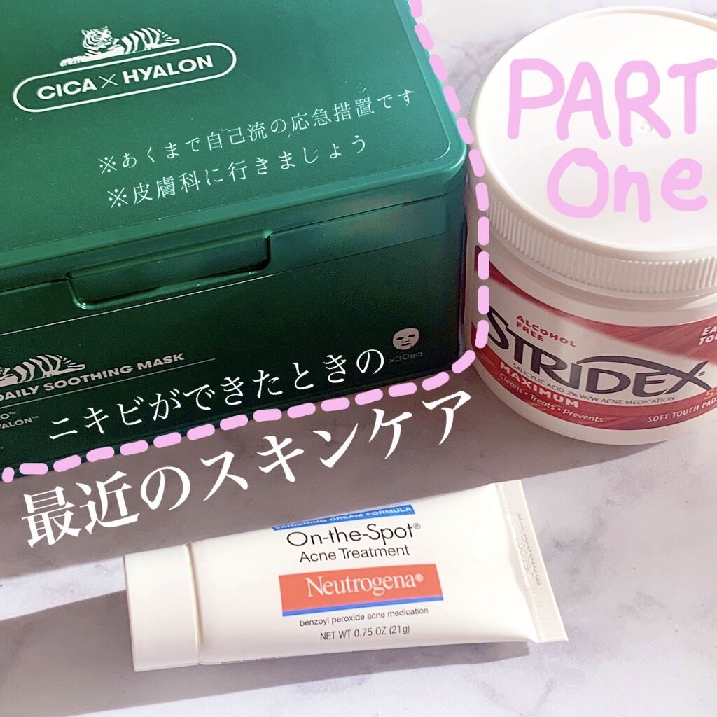 クリームと言ってもジェルみたいな瑞々しいテクスチャ!そして半透明の緑色っぽいクリームです🌱 寝る前のスキンケアの一番最後に、両手の平でニキビができそうなところやできたところ、もしくは生理前などニキビができやすい時はお顔全体にぽんぽんと塗り広げています。ベタつかないし使いやすい👍 こちらを使うようになってからまだ1ヶ月ほどですが、毎月できていたご新規ニキビさんも今のところできていません🎶効果あったのかな、すごい😳✨ 塗り初めに気になっていた顎ニキビも、いつのまにか鎮静されたのか大人しく治っていきました、、笑