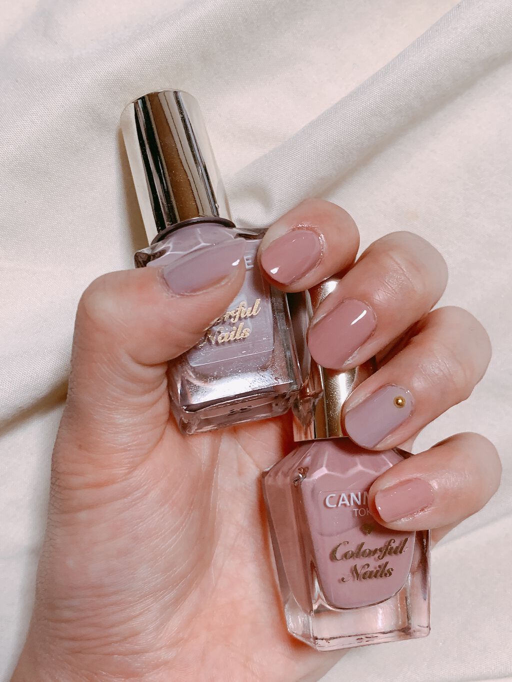 【ネイル投稿】やっとこさ念願のネイル投稿です!今回はCANMAKEのカラフルネイルズ限定色だったN45のアールグレイとN44のシックグレーでネイルしてみました🙆🏻♀️💗この2つはなんとも言えないくらい可愛くて秋にぴったしのお色でした!!期待...