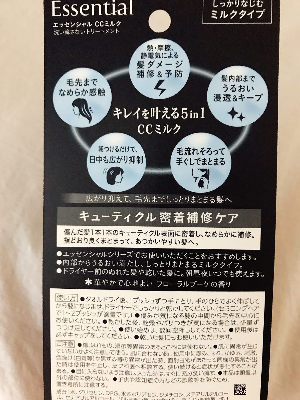 エッセンシャルCCミルク『広がり抑えて、毛先までしっとりまとまる髪へ』キレイを叶える5in1🤍①熱・ダメージによる髪ダメージ補修&予防②うるおい浸透&キープ③毛先までなめらか④日中も広がり抑制⑤手ぐしでまとまる・キューティクル密着補修ケア・内...