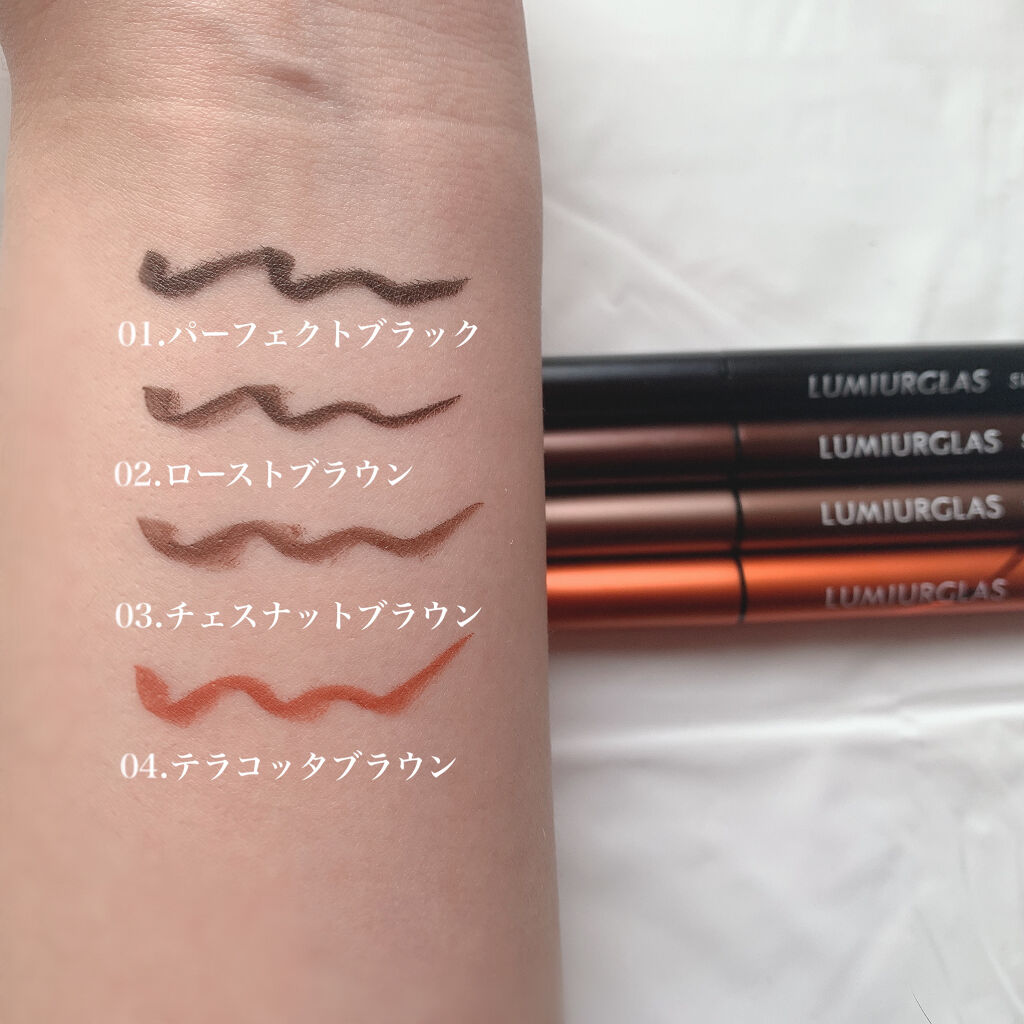 ルミアグラス#スキルレスライナー03チェスナットブラウン#ベルベットライナー03オリーブブラックスルスル線が引けて使いやすいよ。#LUMIURGLAS#ルミアグラス#アイライナー#プレゼント...