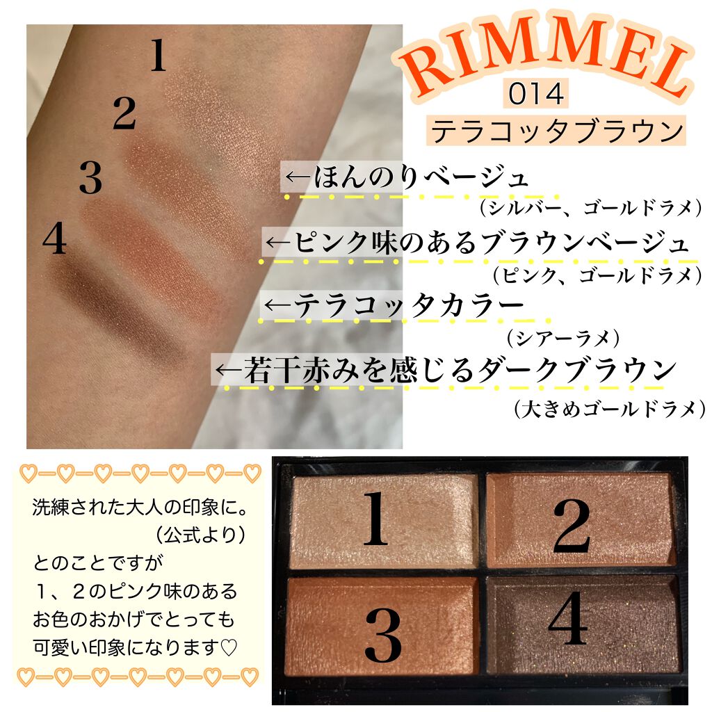 本日のアイシャドウ🧡 #リンメル #ロイヤルヴィンテージ アイズ 019メープルコーラルを、メインに使用しました。明るめのオレンジが可愛く映えます✨ 少しラメが足したくなったので #ショコラスウィートアイズ 011 サワーオレンジショコラの、下段のラメをまぶたに足しました✨✨✨ 涙袋は、このサワーオレンジショコラの上段2色をつかい完成〜!!