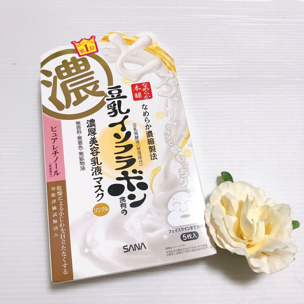 肌もっちりぷるぷる 《なめらか本舗》豆乳イソフラボンリンクルシートマスクN 20枚入り 大容量でとても使いやすかったパックです。ほどよい厚さのシートで5分~10分のお手軽マスク。 ピュアレチノール入りなので主に寝る前に使用していました。