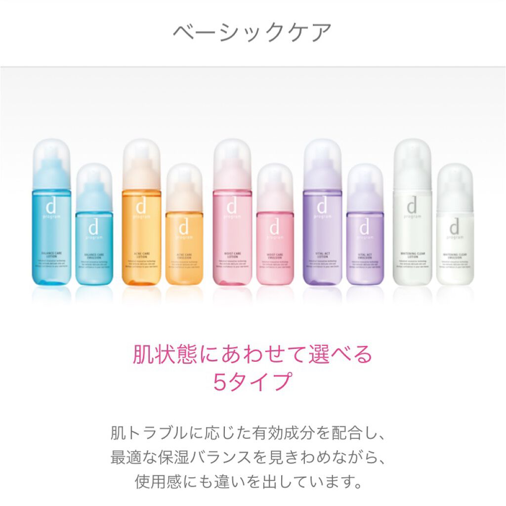 3つとも5年以上愛用しています✨️もう何回リピートしたか分かりません!dプログラム化粧水.乳液は5種類あります、こちらの青タイプがバランスケアでテクスチャーはローションなのでとろみがあるタイプです。ですが5種類の中でも1番さっぱりしていて肌に...
