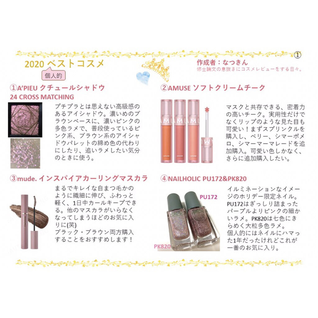 AMUSEのソフトクリームチークをご紹介します。これは今年買った中で最高のチーク!自信を持って人におすすめしたいです。①カラーバリエーションが魅力的。とにかく可愛い色ばかり。私はゴールドパール入りのカラーが特に好きです!②使いやすさと見た目の...