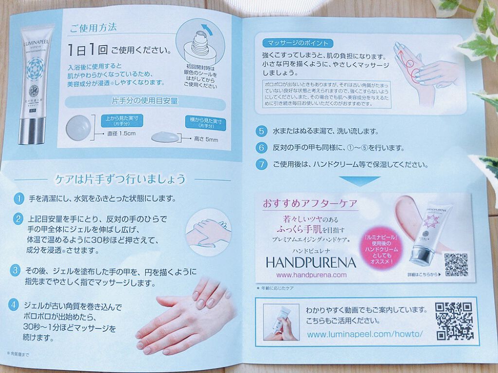 - 【医薬部外品】紫外線の影響を受けやすい手の甲のお悩みに直接アプローチするピーリングジェル。 1本で角質ケア、保湿ケア、ブライトニング*¹、エイジングケア*²が叶う、手の甲のために開発されたケア商品です。 手の甲の皮膚の厚さに合わせて配合されたピーリングジェルで、「メラニン」を含む古い角質を取り除くことで、明るく輝く手肌へと導きます。 さらに、プラセンタエキス、アラントインのWの美白*¹有効成分が角質層まで浸透し、メラニンの生成を抑え、シミ・そばかすを防ぎます。 その他、植物由来の発酵酵母エキスが、角質を落としたあとの繊細な肌を保湿します。 キメを整え、なめらかなやわ肌へと導きます。 *¹メラニンの生成を抑え、シミ、そばかすを防ぐ(医薬部外品) *²年齢に応じたケア