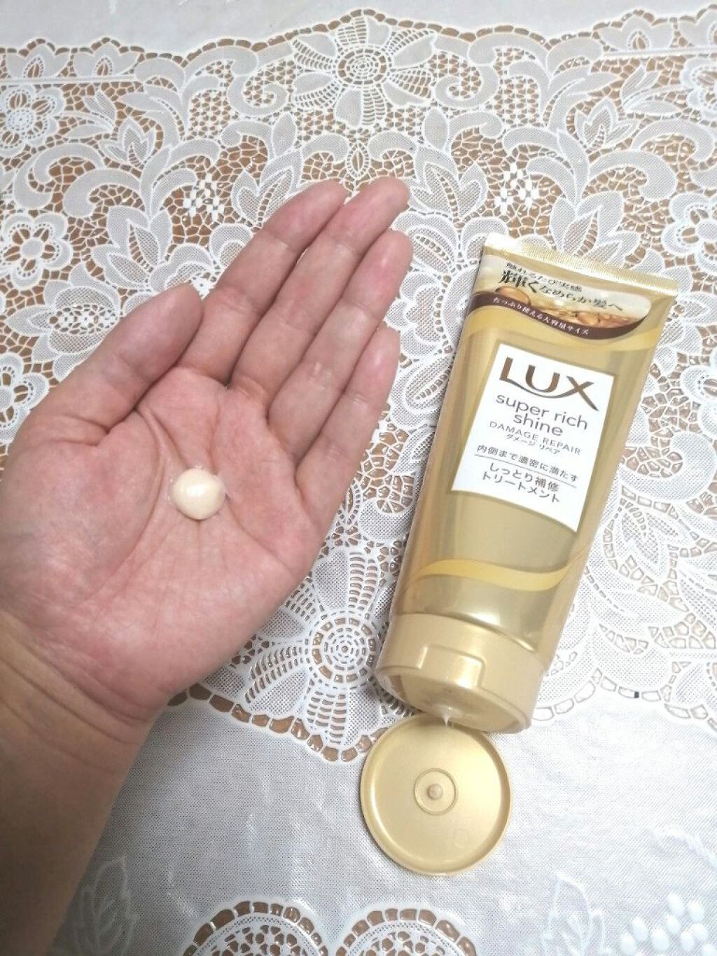 ラックス スーパーリッチシャイン ダメージリペア 補修チューブトリートメントをお試しさせていただきました。嬉しい大容量タイプ。たっぷり使っています♪しっとりしたリッチなテクスチャーで、なめらかに毛先までなじんでくれます。ジューシーなみずみずし...