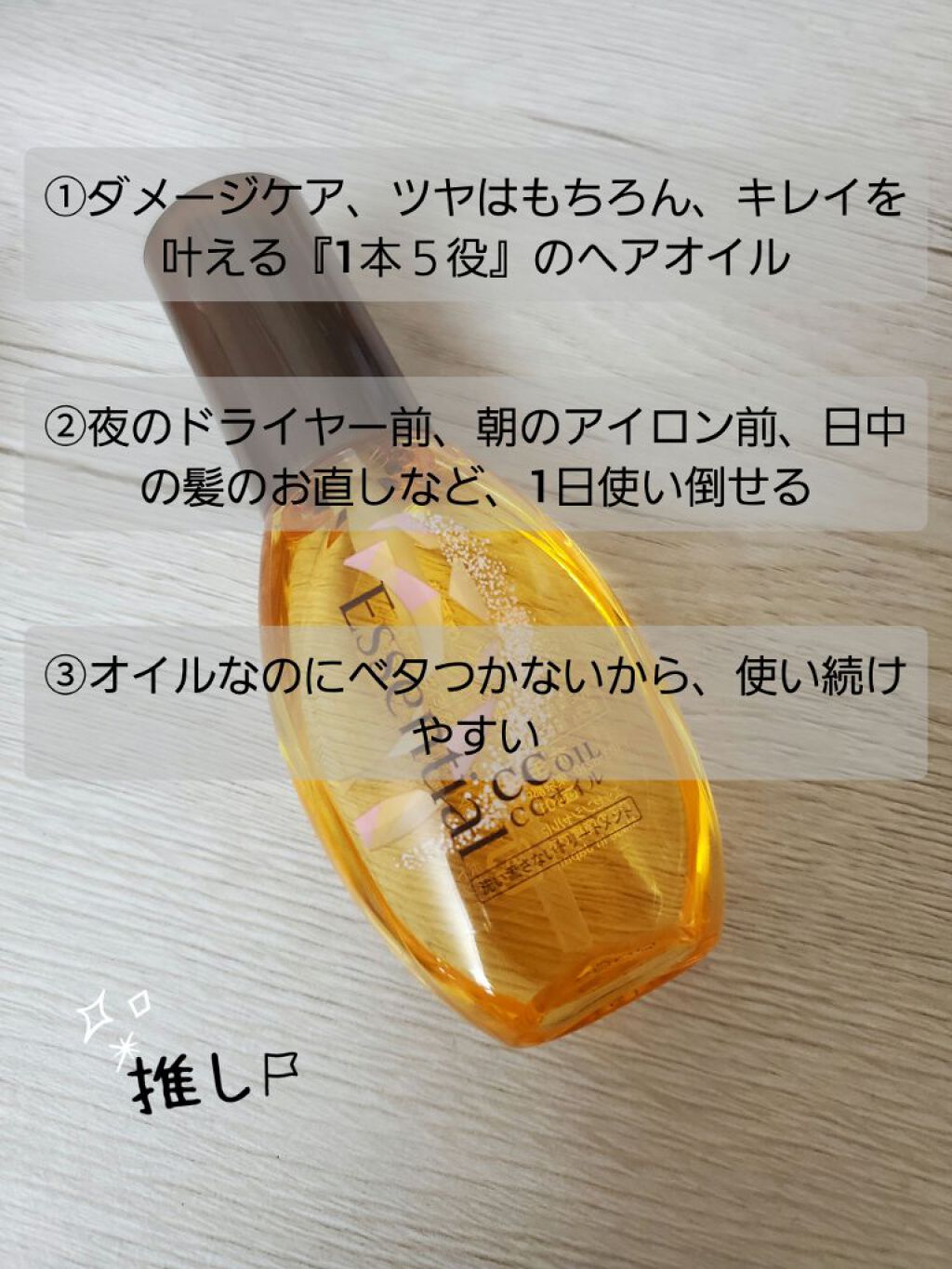 ※2023年使用品ヘアオイル・商品名エッセンシャルCCオイル・値段定価924円(438円で購入)・購入場所ドンキ・評価★☆☆☆☆プレミアムヘアオイル茶色のボトルのより合わなかったこれも数回使って諦めたエッセンシャル全般合わないからそんな気はし...
