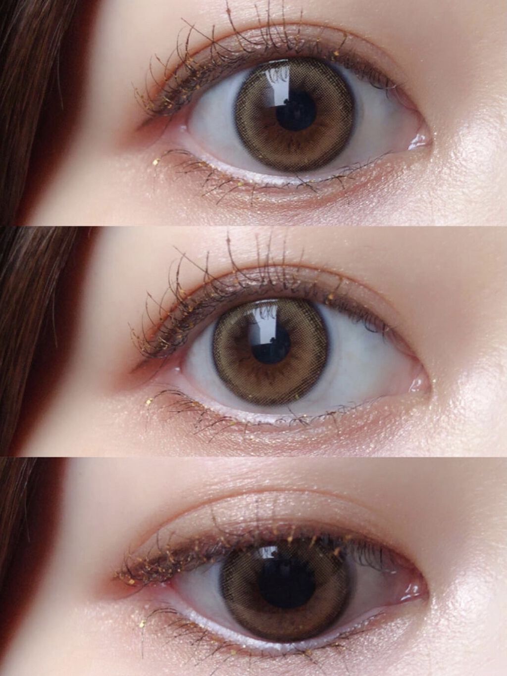 MOLAKプロデュース&イメージモデル宮脇咲良さん▶︎ドーリッシュブラウン3色のトーンで水光グラデーションが瞳に馴染み儚い目元に。細めのふちがあるのでくりっとお人形さんのような瞳に🧸💕水光グラデーションが綺麗すぎて感動した!!元からこの目です...