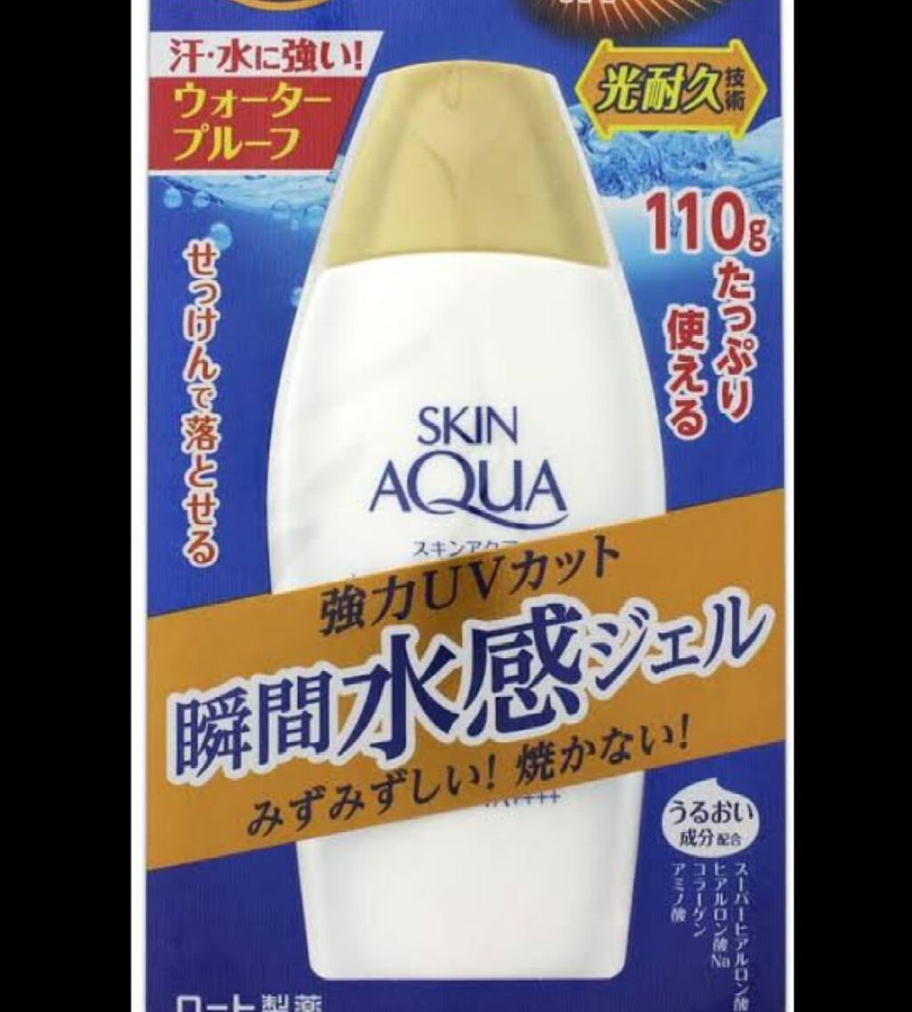 - 塗るたび肌がうるおう日焼け止め。 厳選された3種のヒアルロン酸配合で乾燥から肌を保護します。 スーパーウォータープルーフ。 幅広い紫外線をブロックします。 全身にのばしやすいジェルタイプ。 SPF50+、PA++++、UV耐水性★★。 水のようなつけ心地。 4つのうるおい成分「スーパーヒアルロン酸、ヒアルロン酸Na、アミノ酸、コラーゲン」配合!やさしさへのこだわり。 「アレルギーテスト済み*1、無香料、無着色、鉱物油フリー」。 「スキンアクア スーパーモイスチャージェル」は、最高のUVカット効果*2をもつみずみずしいジェルタイプの日やけ止め。 光耐久技術採用!光によるUVカット機能の低下が起こりにくい独自成分配合。 石けんでするんと落とせます。顔・からだ用で、化粧下地にもオススメです。 たっぷり使えるボトルの110g、大容量ポンプの140gをご用意。 *1:すべての方にアレルギーが起こらないというわけではありません。 *2:スキンアクアシリーズ内。 紫外線防止成分:紫外線吸収剤