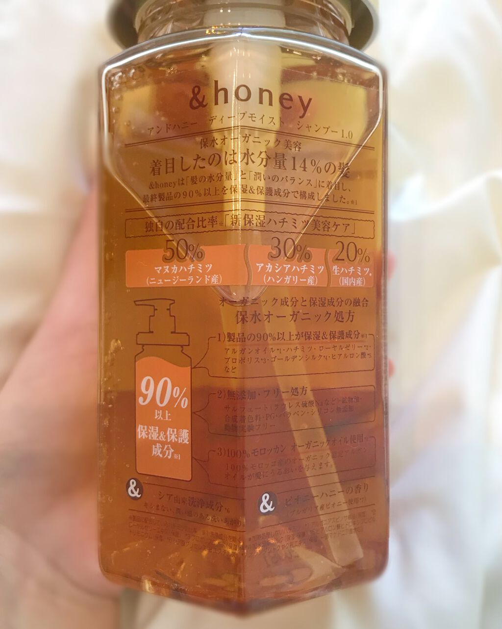 - 仕上がりも、香りも変わるステップケア美容 うるおい成分で洗い、包み込み、ツヤを与えることで、髪の水分量を保ちながら、美しい髪を実現します。 シャンプーはピオニーハニー、トリートメントはラベンダーハニー、 ヘアオイルはダマスクローズハニーと、それぞれ異なる3つのハニーの香りが重なることで、より豊かな香りをお楽しみいただけます。 ナチュラルヘアケアブランド『&honey』は、高い水分量の”14%”を実現するために、製品の90%以上を、ハチミツ・ローヤルゼリー・プロポリス・アルガンオイル・ヒアルロン酸などの保湿&保護成分で作り上げました。 さらに、100%モロッカンのオーガニックオイルを使用し、6つのフリー処方※2にもこだわることで、ナチュラルケアを追求しました。 シャンプー・トリートメント・ヘアオイルと、仕上がりも香りも異なる3つのステップ式ケアで、うるおいを逃がさず、心地よい香りに包まれる新感覚の「保水オーガニック美容」を実感できます。 ※1メーカー従来品 ※2サルフェート、パラベン、合成着色料、鉱物油、合成酸化防止剤、動物実験フリー