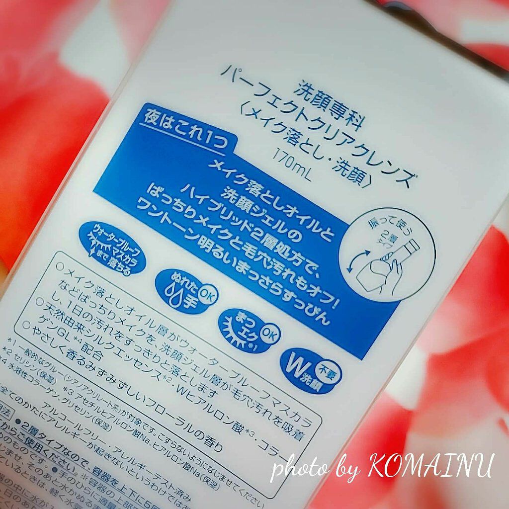洗顔専科パーフェクトクレンズをヘビーに愛用しています。一見、ちょっとメイク落としっぽくないボトルだけど、効果が凄くて①ウォータープルーフが落ちる!②濡れた手OK!③マツエクOK!④ダブル洗顔不要!とかとか、嬉しい事が沢山なのでガチな愛用♪ち...