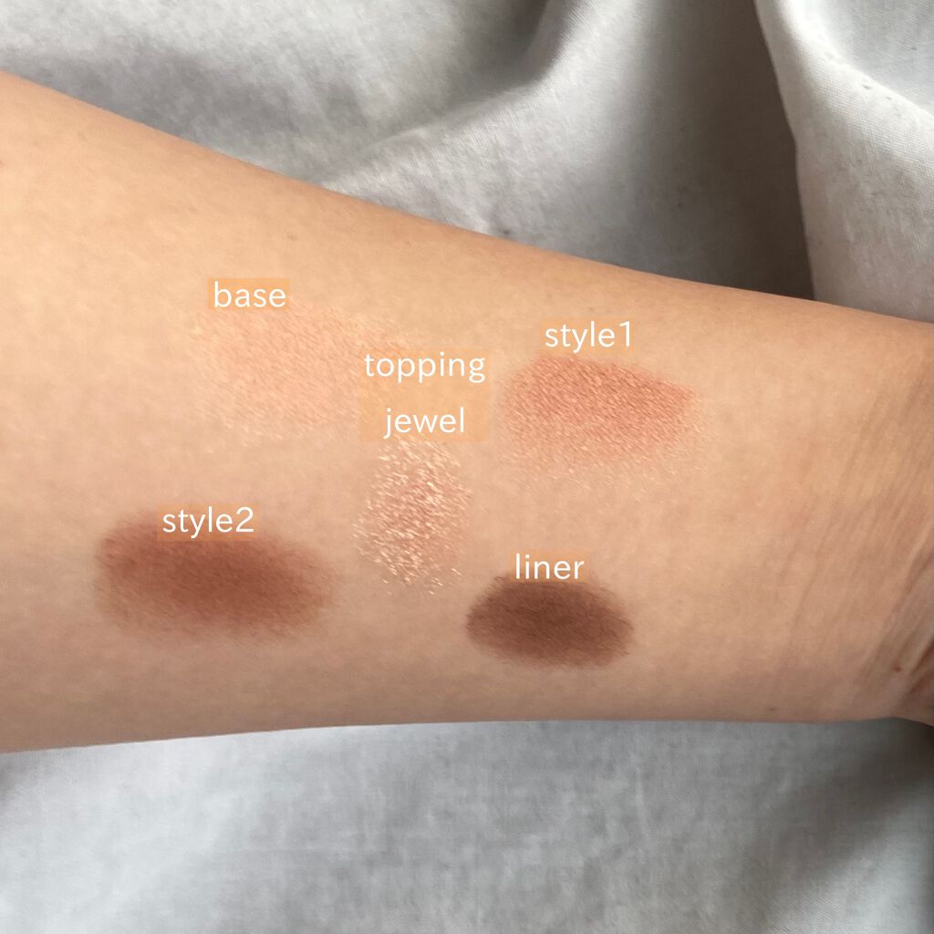 - ラメ・パールは控えめ、しっとり密着して高発色の5色アイシャドウ。1色は上からトッピングできるラメパウダー。ナチュラルスタイルと華やかスタイルを2パターン楽しめるカラーバリエーションです。