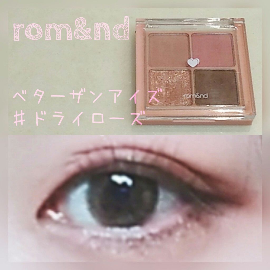 ●ロムアンド ベターザンアイズ ♯2ドライローズ●・・rom&ndの4色アイシャドウパレットベターザンアイズの♯ドライローズを使用しました⸜☺︎⸝くすみピンクが可愛いパレット!!!・目のアップの写真を初めて撮ったのですがボケボケ…発色が上手に...