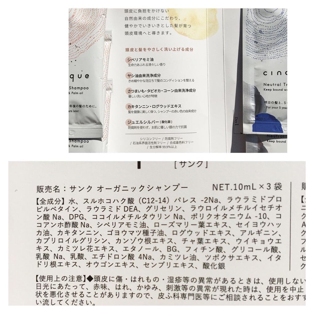 オーガニックシャンプー&ニュートラルトリートメントパッケージデザインもオーガニックらしいオシャレな感じ。シャンプーはオレンジっぽい色。ヤシ油由来の洗浄成分だそうで、頭皮の汚れをしっかり落としながらも、必要なものは残して整えてくれるそうです。オ...