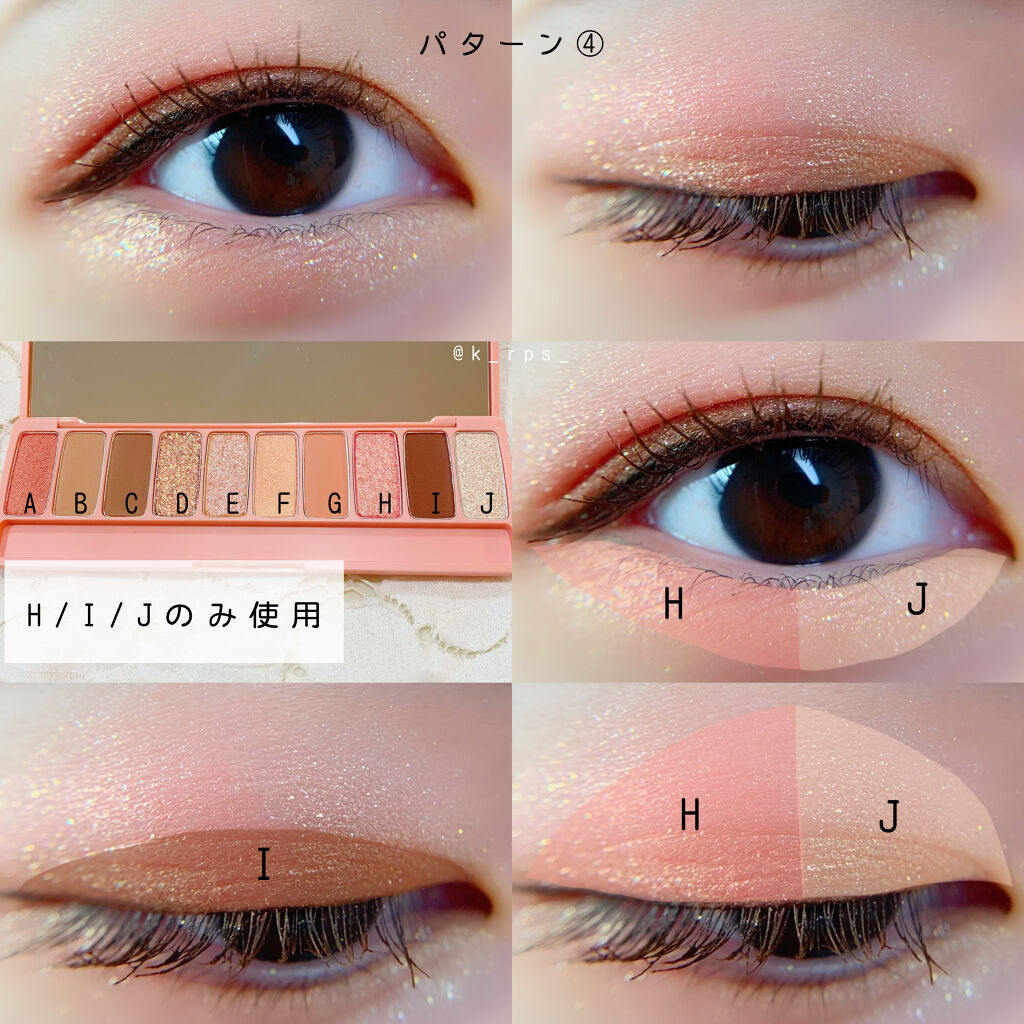 - 肌なじみの良い、鮮やかな発色で目元を華やかに彩る捨て色なしの10色アイシャドウパレット 異なる3種のテクスチャーを自由に組み合わせて、グラデーションも思いのままに。 NEW 2023.4 ・肌トーンにあう配色を詰め込んだトレンドカラー 肌トーンに合わせて、自分に似合うトレンドカラーが楽しめる♡ パーソナルカラー×トレンドカラーの掛け合わせパレットで、デイリーメイクもスペシャルメイクも気分にあわせてなりたい自分に! ・むにゅっとジェル質感ラメで高密着、煌めく目元 パレットの中でもポイントとなる大きめ粒子のラメは、ジェルのような新質感で落ちにくく肌にぴったりと密着します。キラキラとした目元をキープします。 ・使うカラーは大きめに!リアル捨て色なしパレット ベースやラメのよく使うカラーと締め色や濃い色等の減りが少ないカラーを異なるサイズで詰め込んだ、リアル捨て色なしパレット! <使用方法> 付属のデュアルシャドウブラシでベースカラーをまぶた全体に塗り広げます。細いブラシでグラデーションや目尻、アイライン、涙袋などのポイントカラーをのせて仕上げます。