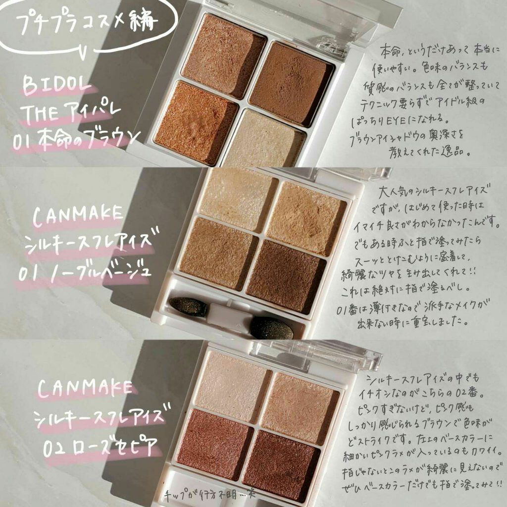 \BIDOLTHEアイパレ全色レビュー/いつもご覧いただきありがとうございます☺︎今日はBIDOLのTHEアイパレを全色比較してみました!詳しくは画像をご覧下さい▹▸ちなみに私の推しカラーは01本命のブラウンと04強がりのピンクグレージュです...