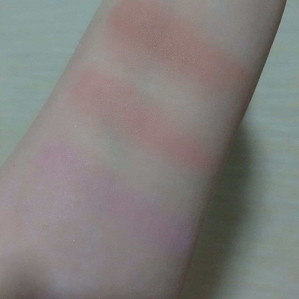 #えりぃのスウォッチです!#ケイト#KATE#3DプロデュースシャドウPU-1#ムーディーエクステンション1540円ピンク味の強いパープル。ラメは大粒なので目元以外には使えなさそう。粉質やラメ感が良くて、さすがケイト!肌なじみが良いのに、目元...