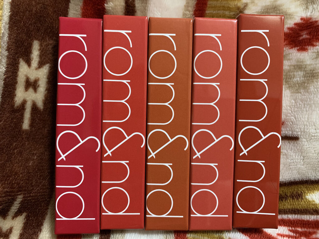 rom&nd(ロムアンド)#01REDTEAメイプルプリックレッド#02CHOCOLATETEAリアルチョコカラー#03CINNAMONTEA透明な紅レッド#04CARAMELTEAユニークなキャラメルブリック可愛い✨色が綺麗✨#リップグロス...