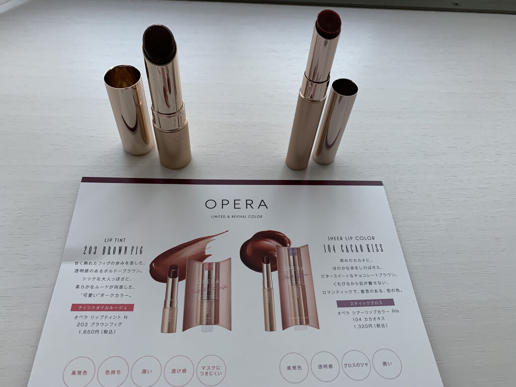 ⚠️私の唇の色は何も付けていない状態でも結構赤みが強めです!それを念頭に置いた上でお読みください!今回はオペラ様からご提供いただいた商品をレビューします!💄シアーリップカラー RNカカオキス ¥1320少し赤みがあり、温かみを感じられ、ミルク...