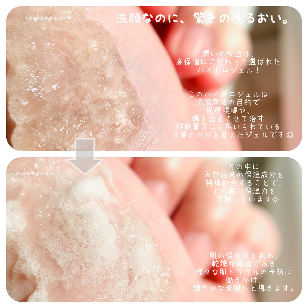 - 【 落とすだけの洗顔に、うるおいをプラス 】 医療現場の「湿潤療法(モイストヒーリング)」をヒントに肌を潤しながら洗う独自のメカニズムで 乾燥肌や敏感肌でも使える優しさと、毛穴のつまりもしっかりと吸着する機能性を両立しました。 水分をたっぷりと含んだハイドロジェルが汚れを浮かし、 こんにゃく由来の柔らかな粒(マンナンジェリー)が浮かした汚れを吸着除去。 お肌を整える12種の和漢西洋ハーブエキス配合で、透明感のある潤い美肌へと導きます。
