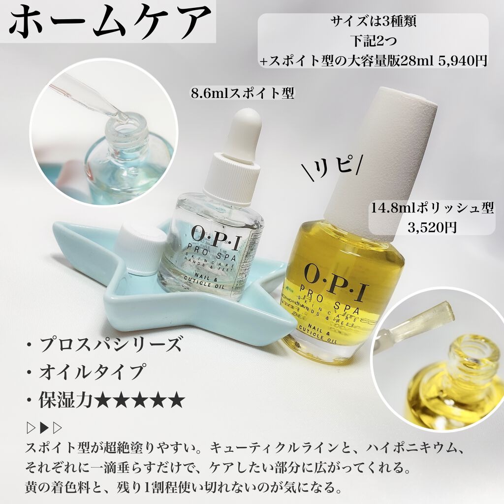 ▷O・P・Iプロスパネイル&キューティクルオイルAS200/8.6ml瓶に入った、スポイトタイプ。朝と夜のスキンケアのタイミングで、ネイルケアもするようにしています。うるおいばっちり。ささくれ気味でもおさまるので重宝してます。少し経てばスマホ...