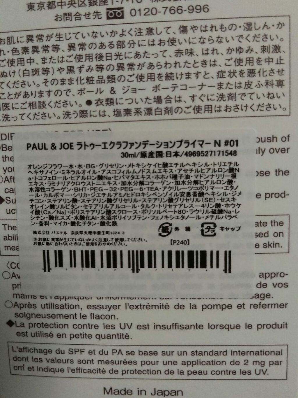 商品詳細情報PAUL & JOE BEAUTE ラトゥー エクラ ファンデーション プライマー N