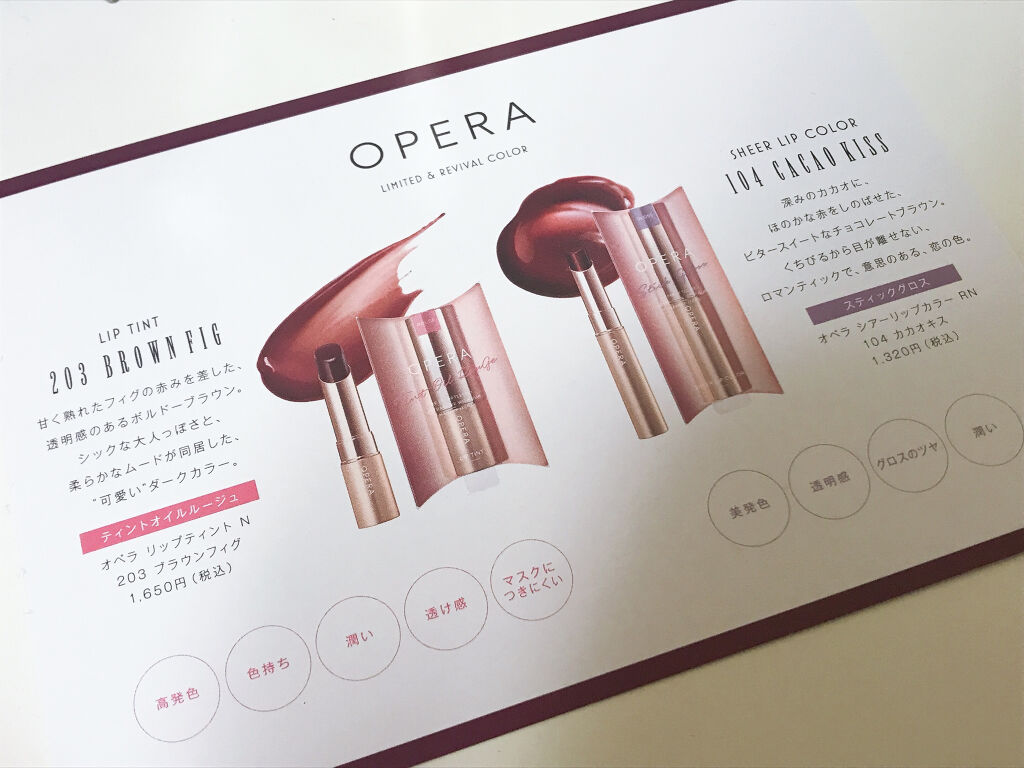 OPERAオペラリップティントN06ピンクレッド復刻新色【色】◎色めっちゃいい。赤くなりすぎず程よくピンクが中和してパキッとならないからいろんなメイクや服に合うと思う。【唇との相性】△私には相変わらず保湿必須。【コスパ】◯¥1,760一般的な...