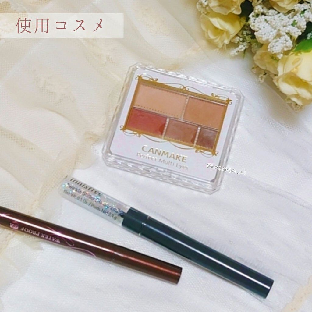 #小粒あいメイク❁❁❁*#キャンメイク#パーフェクトマルチアイズ03#アンティークテラコッタ⇒使い方は画像参照*#エチュードハウス#ルックアットマイアイズ#BE105⇒瞼の中央には指で塗る。⇒あと涙袋には小筆で塗る。*#ディーアップ#シルキー...