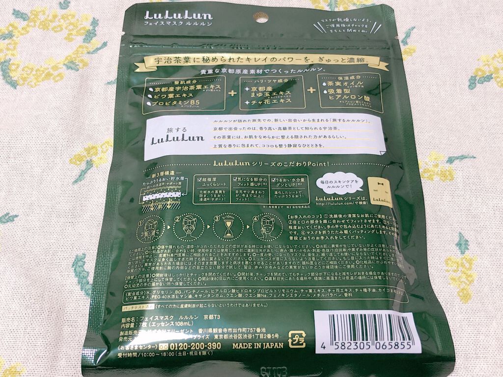 京都限定販売なので京都旅行に行った際に、お土産用として買いました! お肌にうるおいをしっかりチャージしてくれて外した後もお肌にひんやり感が残ります✨ 金色が主役のピカピカのパッケージが結構跡がつきやすいので、気をつけてください!