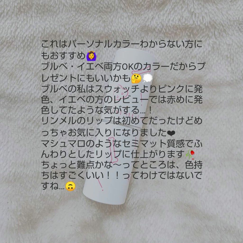 | 口紅・リップスティックランキング第163位 | 発色すごいいいのに、肌に馴染む!マット過ぎず、名前の通りマシュマロみたいな唇に | 詳細を見る | |
