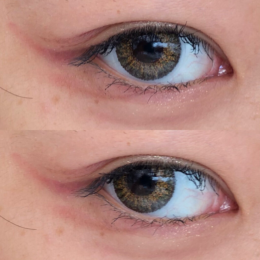 装用感が素晴らしく、生感覚レンズを着けているときのような、着けていることを忘れるほど快適なラルムをシリーズ違いでリピしました⠉̮⃝︎︎ フチのあるデザインは、カラコンの主張が強く、違和感のある印象になってしまうのではないかと思って、今までなかなか挑戦できませんでした( > < )💦 光が入ってウルウルした印象で、キラキララメのアイシャドウにもよく合います♡♡♡