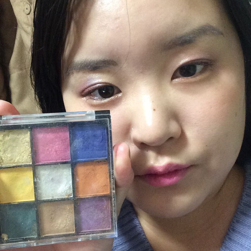 100円とは思えない発色の良さで、ラメが細かいものからグリッターまで色・質感が違うものが入っています イエベ向きの無難なブラウンで使いやすい🙆♀️ 全体的に粉飛び、崩れやすさがあるので、アイシャドウベースを使った方がいいと思います🦖⋆͛