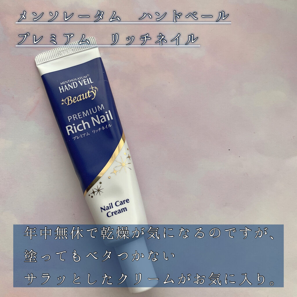 - 「メンソレータム ハンドベール ビューティー プレミアムリッチネイル」は、爪を保護し、すこやかに保つ爪集中補修クリームです。爪が欠けやすい人や爪の乾燥が気になる人、二枚爪の人などにおすすめです。ジェルネイルや研磨によりダメージを受けた爪表面を補修し、除光液や洗剤などにより乾燥した爪周りを保湿。強く美しい健康的な爪へ導きます。